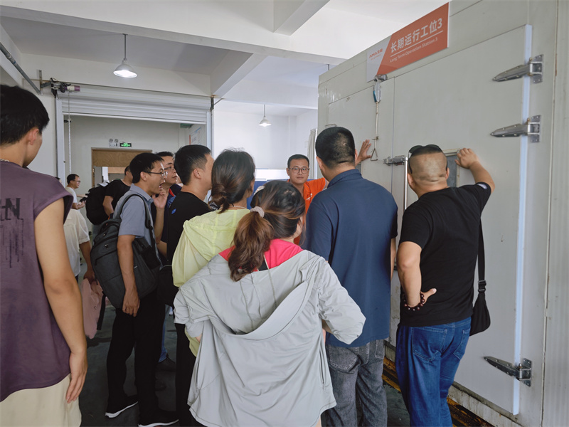 在實(shí)驗(yàn)室,泰州暖通經(jīng)銷商們參觀了長期運(yùn)行工位,同時(shí)觀看了模擬氣候條件-45℃和-50℃極寒天氣實(shí)驗(yàn)室機(jī)器運(yùn)行情況。實(shí)驗(yàn)室工作人員通過實(shí)際參數(shù)讓大家了解生能空氣能超低溫冷暖機(jī)在模擬-30℃實(shí)況下長期運(yùn)行,出水溫度達(dá)到55℃,展現(xiàn)出色的耐寒性,這讓經(jīng)銷商們頗為震撼。同時(shí),工作人員打開一個(gè)長期運(yùn)行工位試驗(yàn)實(shí)來讓大家近距離觀看生能空氣能冷暖機(jī)在超低溫狀況下如何自動(dòng)化霜。經(jīng)銷商們紛紛走進(jìn)實(shí)驗(yàn)室感受迎面而來的寒氣、厚厚的霜,仔細(xì)觀看機(jī)組自動(dòng)化霜場景等,更覺生能空氣能產(chǎn)品靠譜。