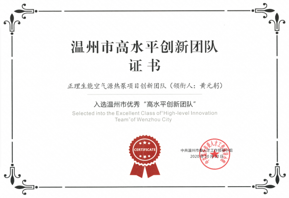 會上,浙江正理生能空氣源熱泵項目創(chuàng)新團(tuán)隊榮獲“2020年溫州市高水平創(chuàng)新團(tuán)隊”,姚高員市長現(xiàn)場為“2020年溫州市高水平創(chuàng)新團(tuán)隊”頒獎。這是生能高水平專業(yè)建設(shè)的又一成果,也是對生能科技創(chuàng)新實力的又一次認(rèn)可。
