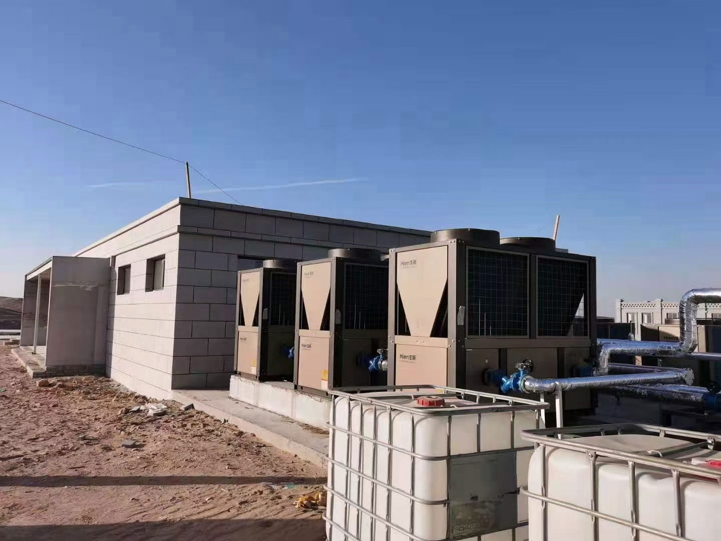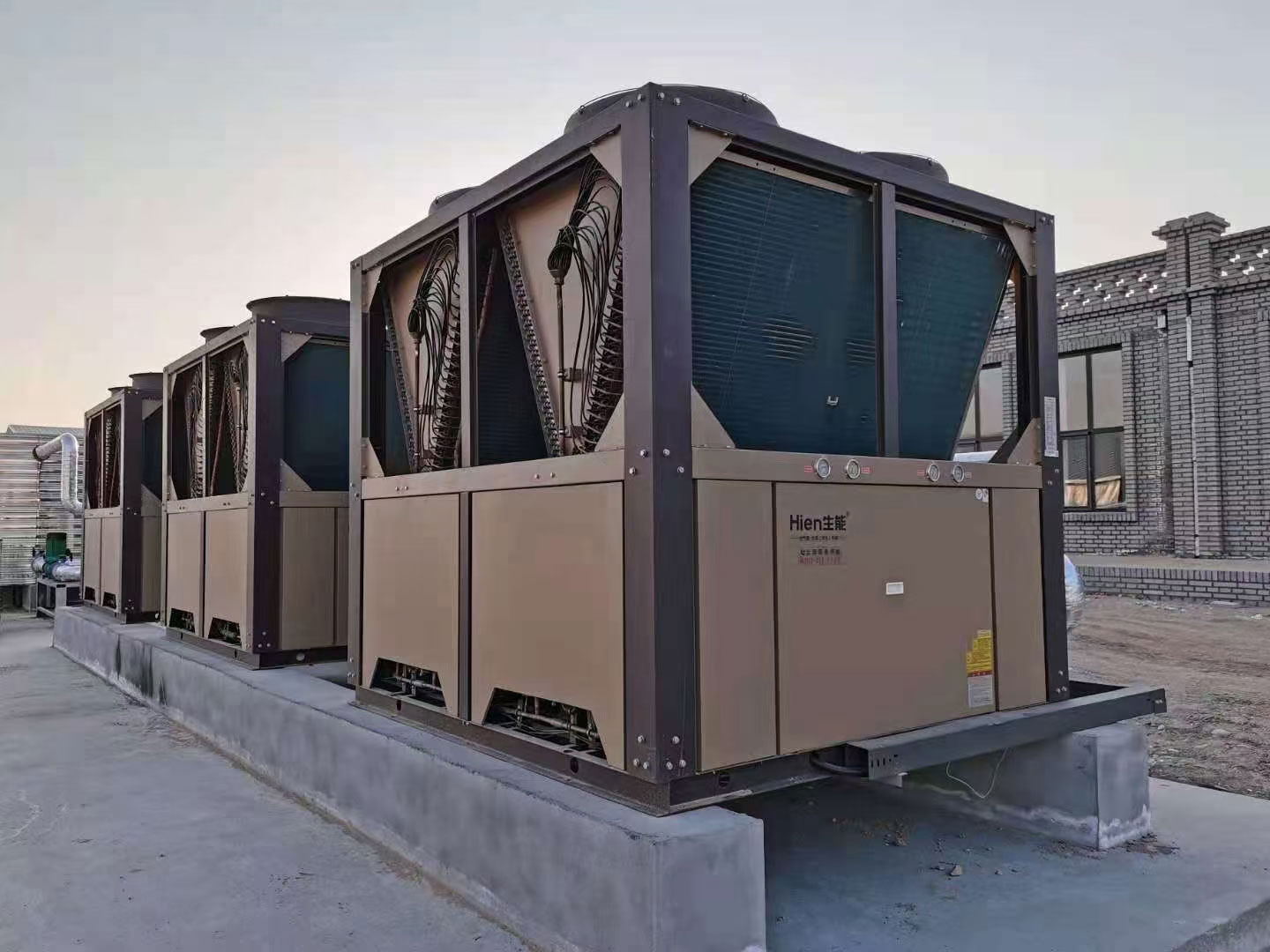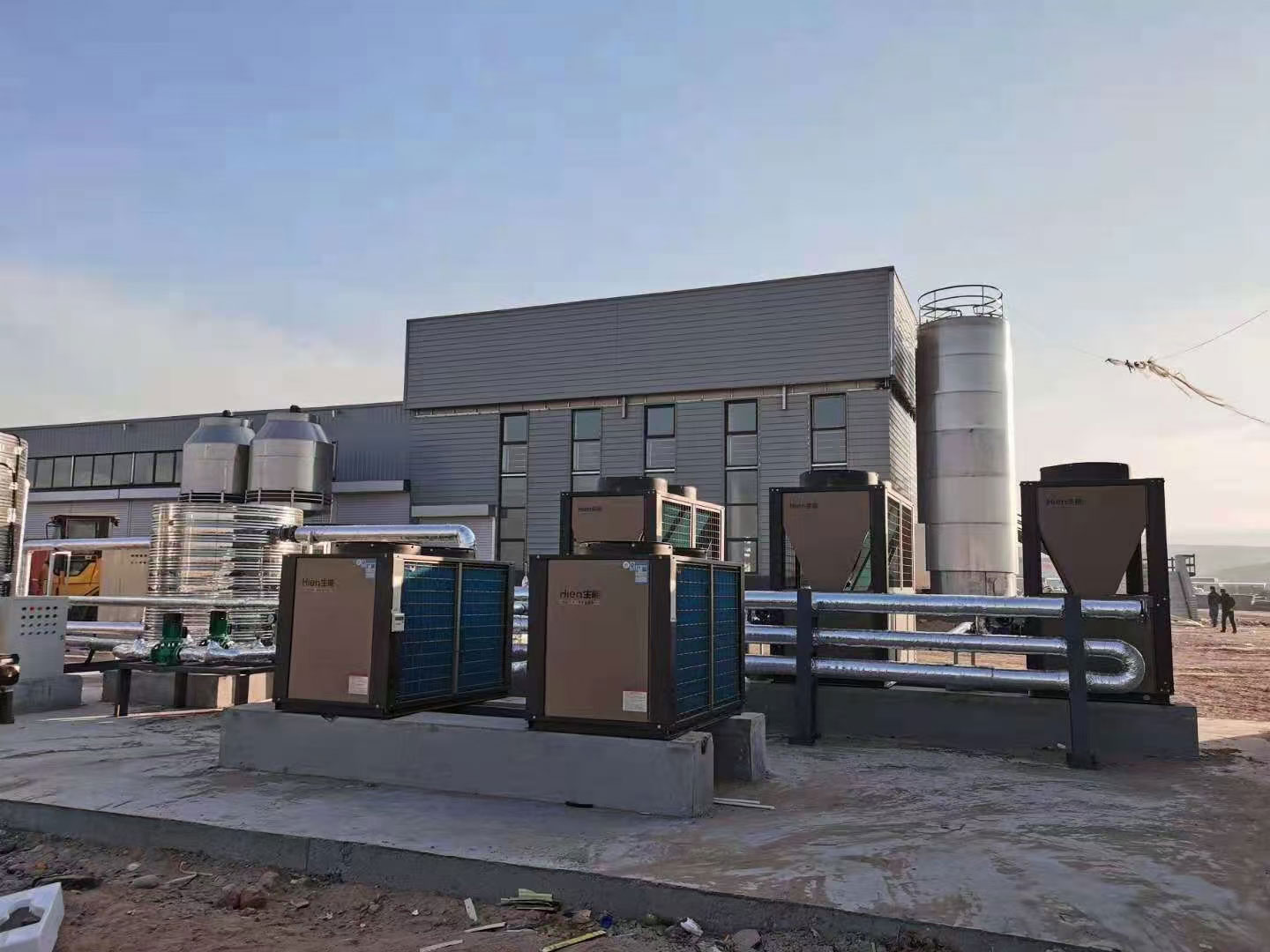 生能空氣能綜合聚牧農(nóng)牧業(yè)的各項情況,為其配置了3臺30匹的生能空氣能冷暖兩聯(lián)供滿足2000平方米擠奶廳冬暖夏涼、舒適每一天的需求;并配置了3臺70匹的生能空氣能供暖機,滿足該公司辦公室和宿舍(共5000平方米)的健康舒適供暖需求;同時還為其配置了2臺10匹的空氣能熱水,滿足員工宿舍即開即熱舒適熱水的需求。