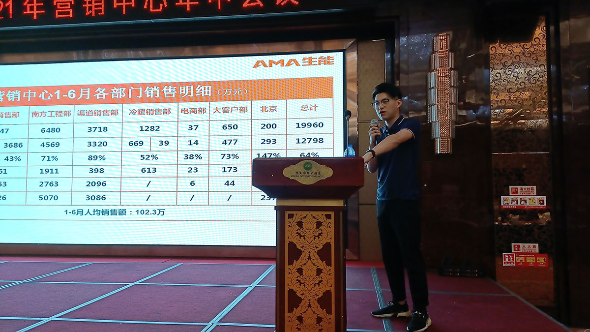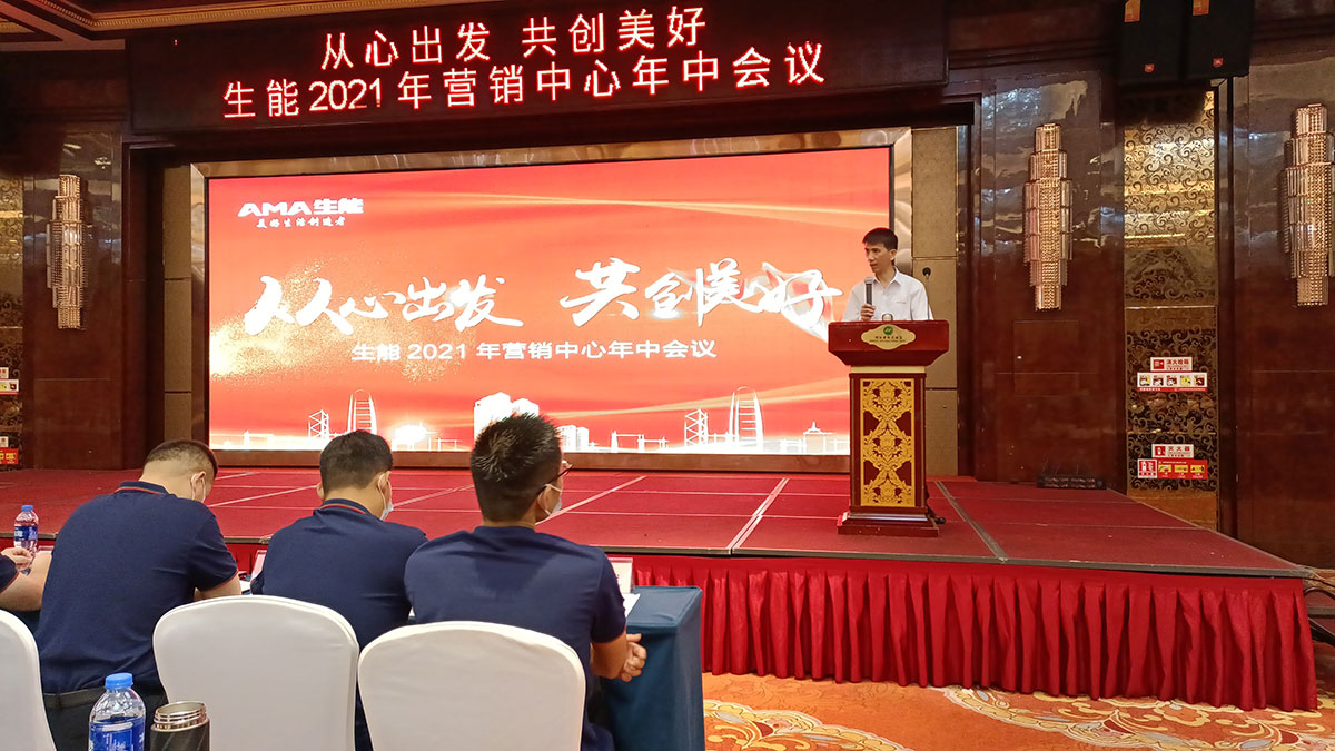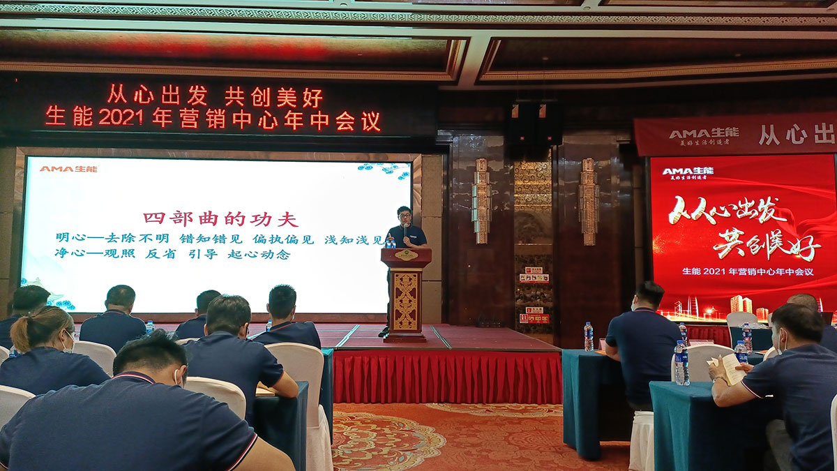 會(huì)上,黃董發(fā)表致辭,首先對(duì)各位的到來(lái)以及新同事的加入表示熱烈的歡迎,同時(shí)對(duì)大家上半年的努力付出表示衷心的感謝!黃董回顧了2021年上半年生能空氣能取得的成績(jī),如:從心出發(fā),啟動(dòng)生能空氣能銷(xiāo)售服務(wù)系統(tǒng);升級(jí)地暖空調(diào)一體機(jī)、風(fēng)冷模塊機(jī)組、烘干機(jī)等產(chǎn)品;打造環(huán)保健康家居一站式服務(wù),開(kāi)啟生能幸福美好生活體驗(yàn)館紅星國(guó)際店、生能青海西寧大通空氣能旗艦店等等。同時(shí),黃董講解了生能空氣能上半年銷(xiāo)售、招商、售后網(wǎng)點(diǎn)、新建專(zhuān)賣(mài)店、開(kāi)拓分銷(xiāo)網(wǎng)絡(luò)等整體情況。黃董肯定成績(jī),總結(jié)不足,并指出了下半年的目標(biāo)規(guī)劃。黃董表示生能空氣能的使命是讓員工獲得物質(zhì)和精神兩方面幸福,并為人們對(duì)環(huán)保健康幸福美好生活的向往而努力奮斗,黃董也講解了為更有效達(dá)成使命、實(shí)現(xiàn)愿景而指導(dǎo)行為準(zhǔn)則的企業(yè)價(jià)值觀。黃董希望每一個(gè)生能空氣能人在崗位上更好地實(shí)現(xiàn)個(gè)人價(jià)值,在2021年下半年及未來(lái),一同從心出發(fā),共創(chuàng)美好!