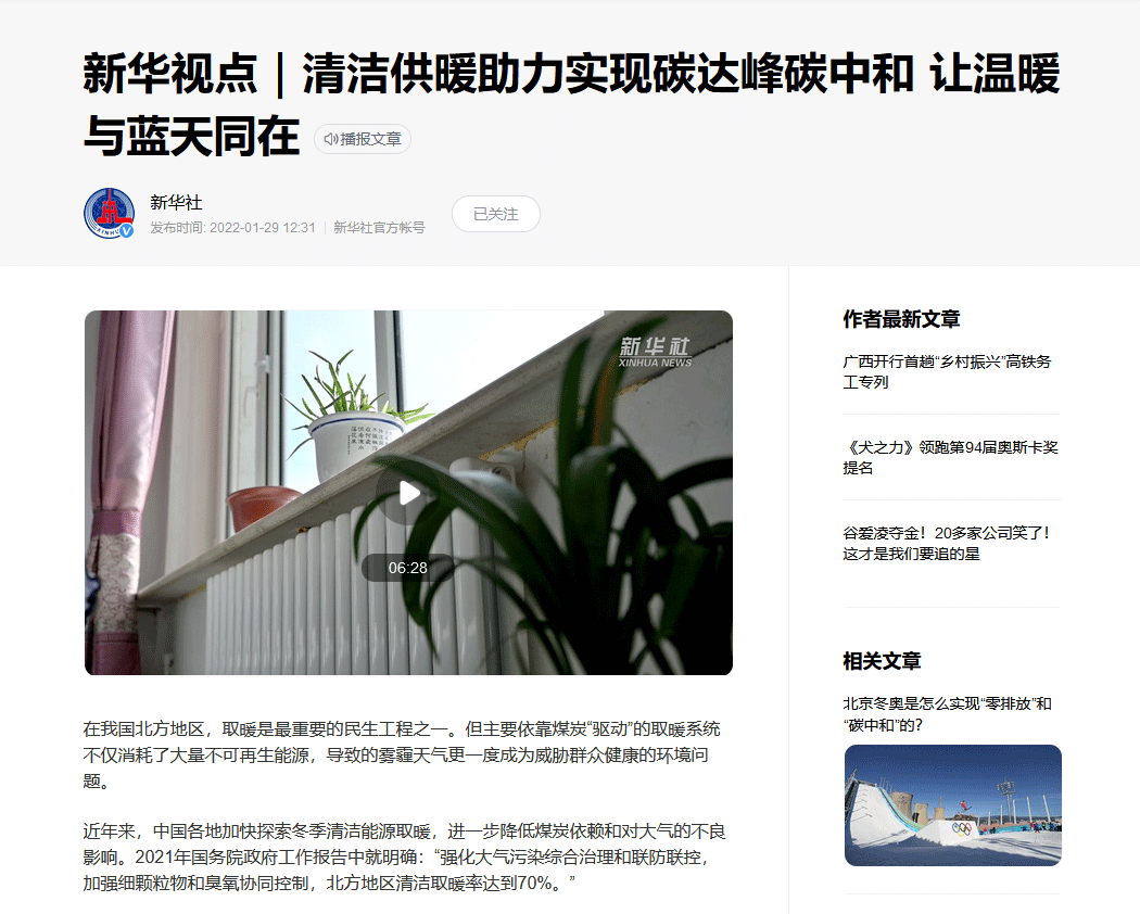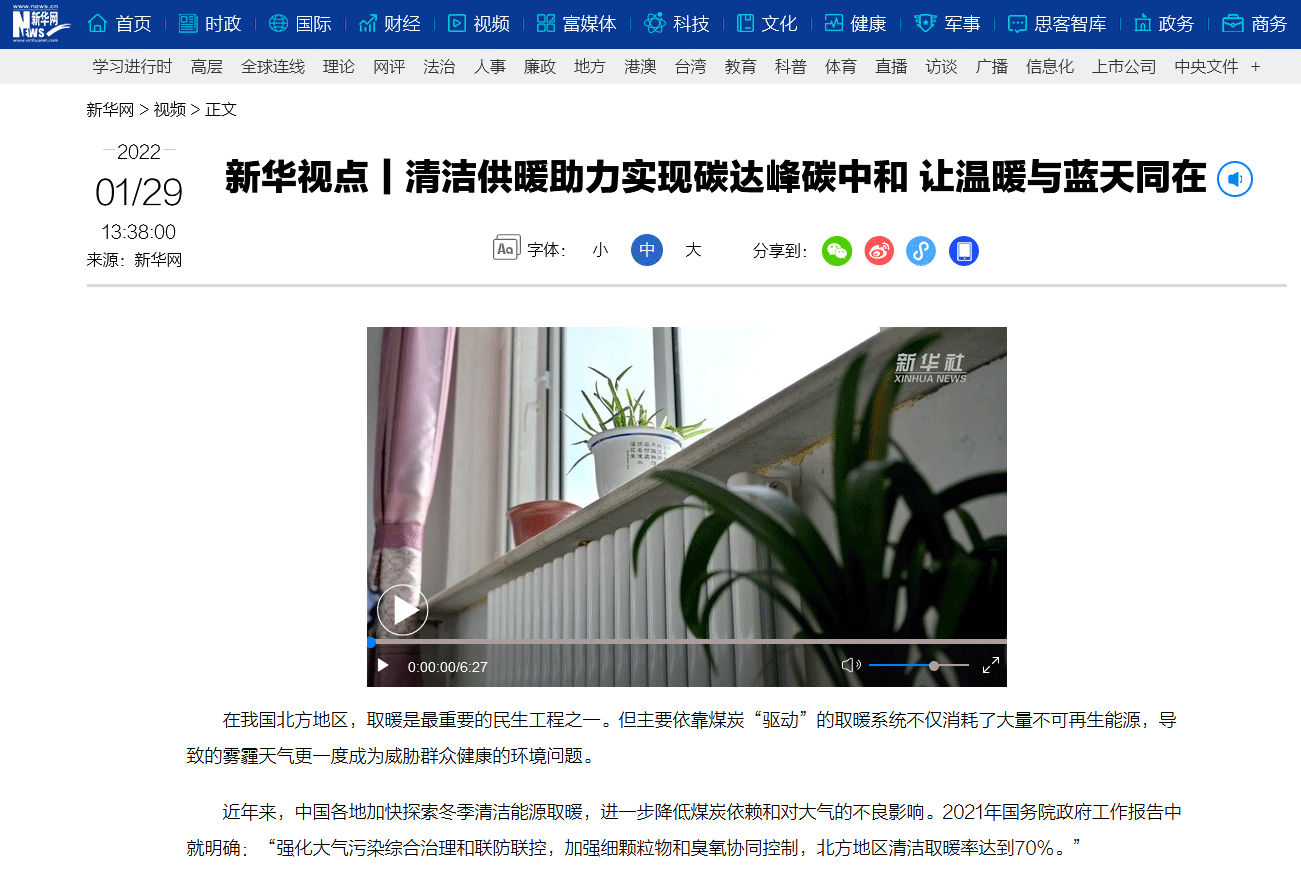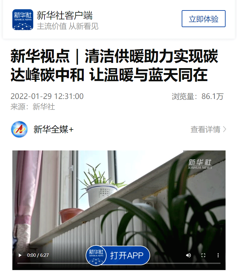 近日,新華社發(fā)表的《新華視點|清潔供暖助力實現(xiàn)碳達(dá)峰碳中和 讓溫暖與藍(lán)天同在》,以文字、圖片加視頻的方式報道了生能空氣能。新華網(wǎng)、新華全媒+等也都轉(zhuǎn)發(fā)了此次報道。