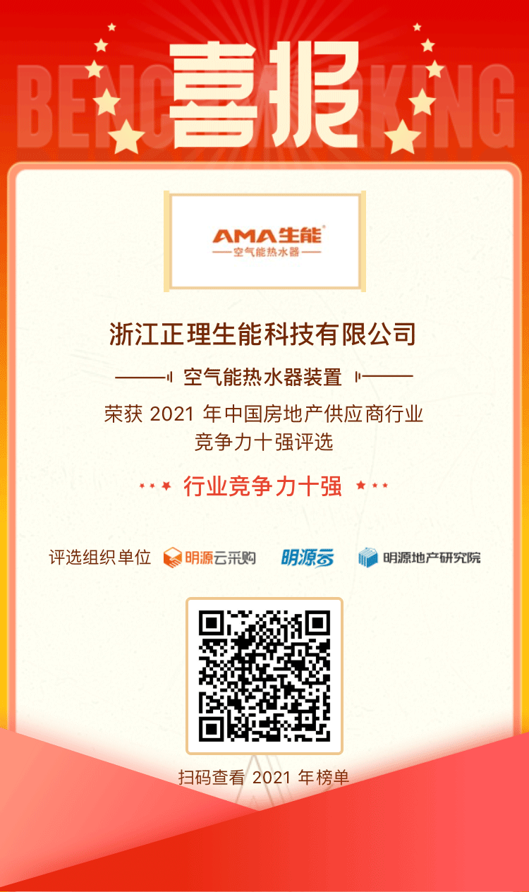 2月24日,在明源云采購(gòu)舉辦的第六屆地產(chǎn)供應(yīng)鏈行業(yè)評(píng)選榜單發(fā)布儀式上,生能空氣能榮譽(yù)入圍“2021中國(guó)房地產(chǎn)供應(yīng)商行業(yè)競(jìng)爭(zhēng)力十強(qiáng)”榜單,成為空氣能熱水器裝置供應(yīng)商十強(qiáng)企業(yè)。該獎(jiǎng)項(xiàng)是對(duì)生能空氣能的又一次認(rèn)可與嘉獎(jiǎng),可喜可賀!