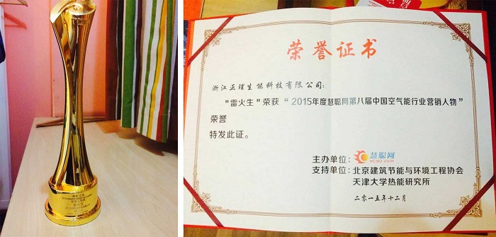 12月3日,2015年度中國(guó)空氣能行業(yè)品牌盛會(huì)在北京釣魚臺(tái)國(guó)賓館圓滿舉行,在這堪稱行業(yè)“奧斯卡”盛典上,浙江正理生能科技有限公司營(yíng)銷總監(jiān)雷火生榮獲“2015年度營(yíng)銷人物獎(jiǎng)”,以表彰其在生能品牌建設(shè)、產(chǎn)品推廣等方面的出色能力。