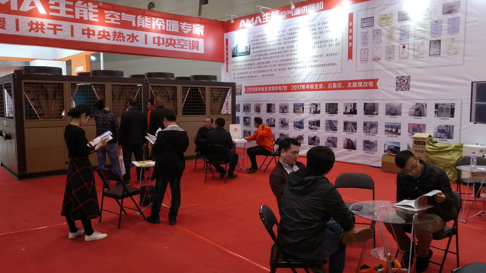 在生能展館,高節(jié)能、高品質(zhì)、被規(guī)模性推廣使用的明星供暖機(jī)組盛裝出席展會,引來眾多參展客商的駐足參觀,精細(xì)的設(shè)計工藝受到了參展商們的贊許和認(rèn)可;其中,生能的巨型供暖機(jī)組更是引發(fā)了現(xiàn)場新一波熱潮,此款供暖機(jī)是生能全新發(fā)布的供暖新品,采用蝸旋式壓縮,實(shí)現(xiàn)行業(yè)單容量最大之一;機(jī)組在低溫工況下的制熱量能達(dá)到320kw,耐低溫能力更勝一籌;此外,機(jī)組在低溫環(huán)境下制熱或在高溫環(huán)境制冷運(yùn)行效果更佳。