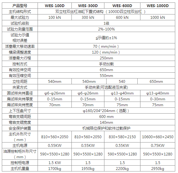 濟(jì)南試金WES-D數(shù)顯式液壓萬能試驗機(jī)主要用于金屬材料的拉伸、壓縮、彎曲等力學(xué)性能試驗,增加簡單的附件后可對水泥、混凝土、磚、瓦、橡膠及其制品進(jìn)行檢測。